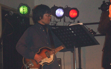 この会場は「ビジネスホテル乃どり」の地下ですが、アングラ的雰囲気が神秘的でロック・ジャズのライブには格好の場所では……。