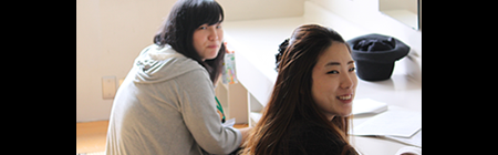 ▼ 女性用の更衣室内で寛ぐ二人です。 |