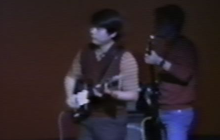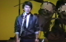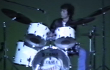 Konnoはバンド結成以来、イヤ彼自身が音楽を志した時からギター専門でしたが、この文化祭の1ヵ月程前に突然ドラムス担当のTobaが出演できなくなったことから、急遽1ヵ月の猛特訓でドラムに臨時的にトレード。生まれて初めての舞台上でのドラムに半ば捨て身で望みましたが、意外にも好評であったため、後々のドラム担当に廻されるきっかけのステージとなりました。 |