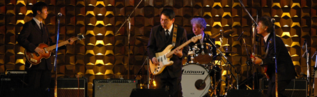 終了後は同会場からNHK BS2の特番を生でオンエアもされ、出演者は大満足の一日となりました。 KSO2は地区予選で優勝が決定した頃から密着取材を受け、ビートルズ来日時に武道館に足を運んだSekine氏、リッケンバッカーのコレクターで知る人ぞ知るOgawa氏、自宅の地下室に本格的なレコーディングスタジオを開設したKonno氏、現役時代のビートルズは知らないが、先輩の薦めにより否応なしに付き合っているKatoh氏、それぞれ家庭や会社内での生活や練習風景など十数分にわたりKSO2が放送されました。