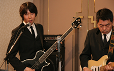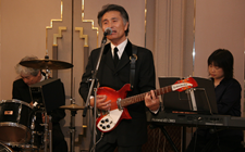 酒々井ライオンズクラブの20周年記念祝宴にビートルズのコピーを中心に活動されている対バンの「The Group & I」さんからお声がかかり出演することとなりました。出演できることはKSO2にとっても嬉しいことですが、このような祝宴での席に於いて30分もの間我々の演奏に集中してもらえるかどうか。「ボリュームを絞ってくれ!」いや?へたをすれば「演奏はもう結構! 会話ができない」とのクレームが出そうな不安感が先に立つ。結果的には無事に終了することができましたが、果たしてお客様に真に喜んで頂けたか!? 難しいところです。 |