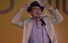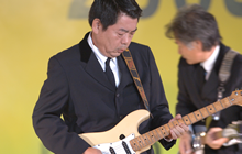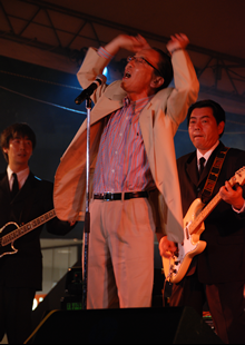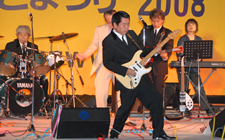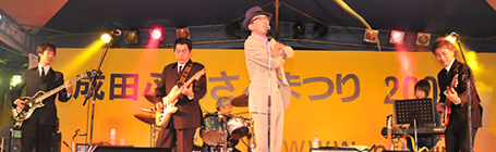 昨年はイエローキャブのタレント「仲村瑠璃亜」さんの飛び入り等で盛り上がったのですが、今年は、何と! 現役成田市長(小泉一成さん)がスペシャルゲストとして出演していただきました。小泉市長さんは沢田研二さんのファンとのことで曲「勝手にしやがれ」を熱唱していただき、バックでアドリブを奏でるリードギターの教育長とのコラボレーションがお客様の目を釘付け。