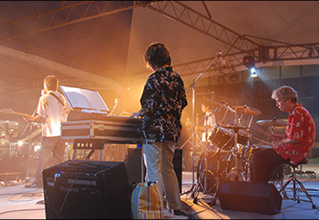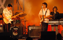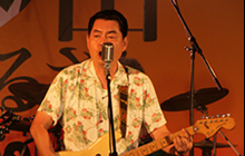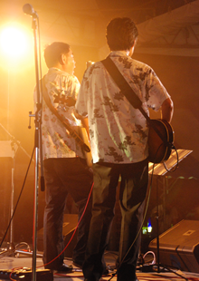 今年の成田ふるさとまつりは市制施行55周年&第30回を記念して中央舞台前に特設ビアガーデンが誕生! ムード満点のハワイアンミュージックやフラダンスを楽しみながらビールや軽食をいただくはずでしたが、急遽! KSO2に出演のお声が掛かり、大した予定が入っていなかったことから快諾させて頂いたのは良かったのですが、これが後に大失態をしでかすとは思いもよりませんでした。この前夜祭はスタッフ一同アロハシャツで対応するとの方針から、KSO2も実行委員会からアロハが支給され、ステージに臨みました。 |