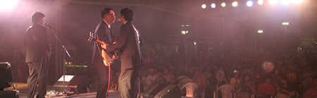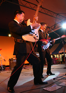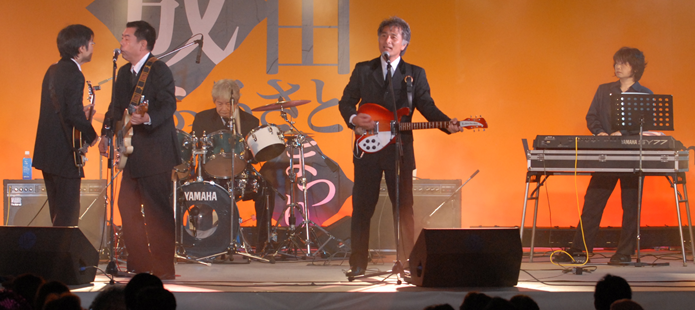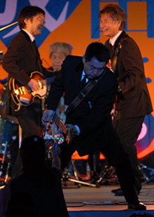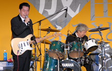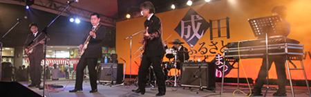 成田ふるさとまつりも昨日の前夜祭に引き続き2日連続の出演です。本日の出し物はKSO2の定番のロックンロールを中心とする曲でもあり、昨日のリベンジをとの思いから、久しぶりにメンバーの気持ちが一丸となってライブに臨みました。 |