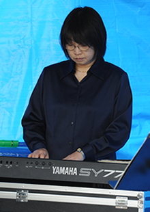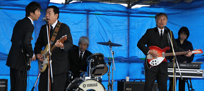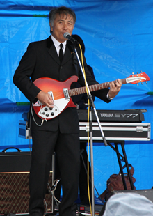 ▼ 会場となった「まこも」駐車場に特設された ステージ ![]() |