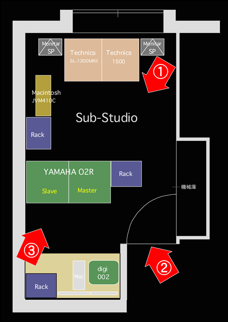 このSub-StudioはK-Studioと別の場所にあるオーナーの居宅マンションの1室を編集作業にと改装したものです。